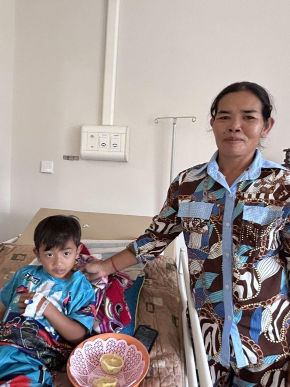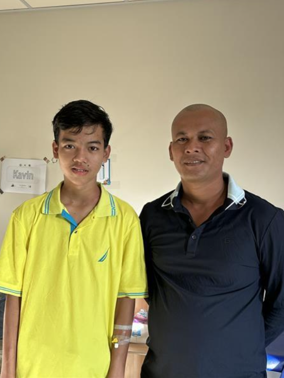 カビンくんは静かでおとなしい性格で、入院中はゲームやスマホでショート動画を観ながら過ごしています。好きな食べ物は、カンボジアの甘いスープ(茶色で豚肉と卵が入った料理)。趣味は友達とサッカーをすることです。